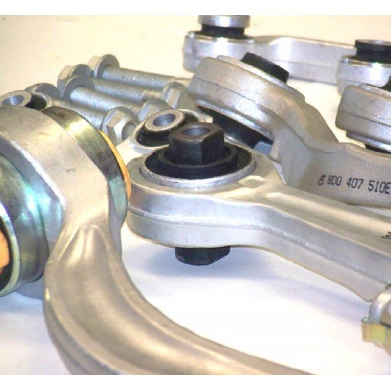 NOTE 1: This kit is for later B5 S4's, as well as earlier Audi A6 models with steel uprights. Cars with aluminum uprights need 2 different lower control arms, and that kit is available. Contact us for details. You can easily verify if your car uses this kit if your suspension uprights are made out of steel.